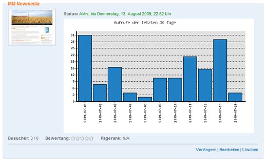 Zeit Zugriffe auf die Detailseite eines Eintrages